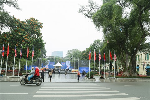| Devant la statue du roi Ly Thai Tô, rue Dinh Tiên Hoàng, à Hanoï, pendant les jours du Sommet. |