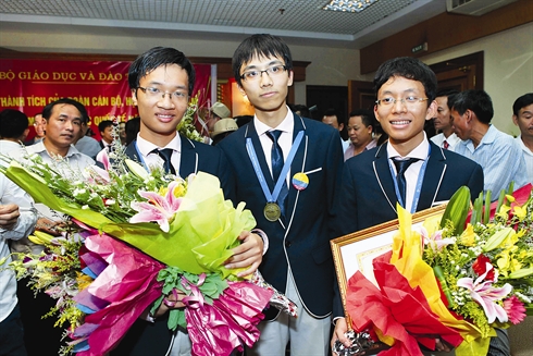 | Tuân Huy (1er plan, à gauche) remporte la médaille d’or des Olympiades internationales de mathématiques en Colombie. |