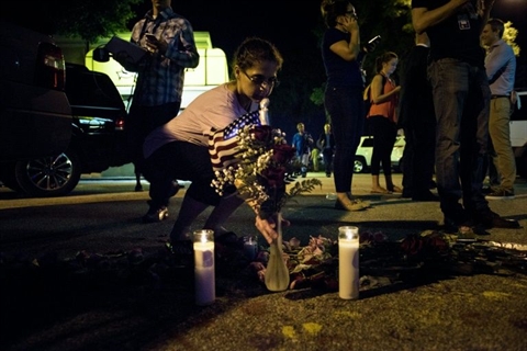 | Des fleurs sont déposées au hommage aux victimes de l'attaque de la boite de nuit Pulse, le 12 juin à Orlando. |