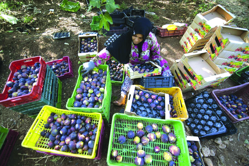 | Une femme remplit des cagettes de figues à Djebba, en Tunisie. |