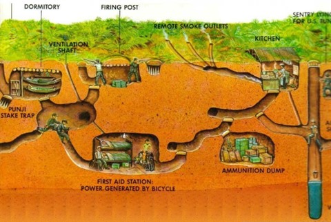 Selon le SCMP, ces tunnels sont une destination touristique attrayante et offrent de nombreuses informations historiques intéressantes. Ils se trouvent à environ 25 km au nord-ouest de Hô Chi Minh-Ville. Construits depuis la fin des années 1940, ils ont été tracés dans un sol argileux rocheux peu susceptible de s’écrouler. Ce réseau de tunnels était capable de résister aux bombes les plus puissantes de l'armée américaine.