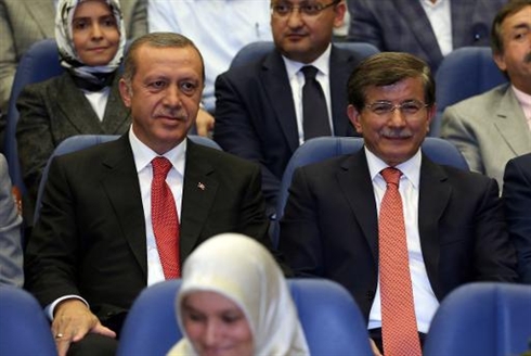 | Le président turc Recep Tayyip Erdogan (gauche) et son nouveau Premier ministre Ahmet Davutoglu, lors de la réunion de l'AKP, le 21 août à Ankara |