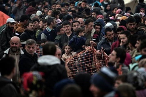 | Des migrants à la frontière gréco-macédonienne, près du village grec d'Idomeni, le 4 mars. |