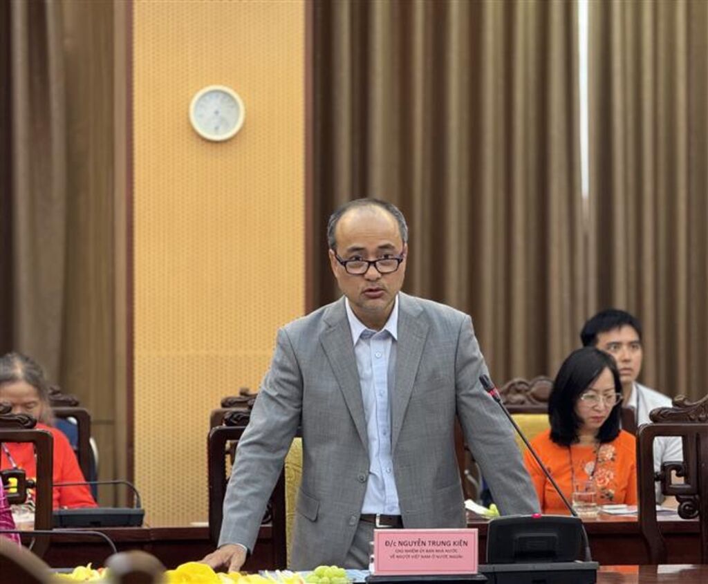 | Nguyên Trung Kiên, chef du Comité d'État chargé des Vietnamiens d'outre-mer, s'exprime lors de la séance de travail. |