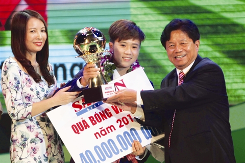 | Tuyêt Dung (centre), Ballon d’Or Vietnam 2014. |