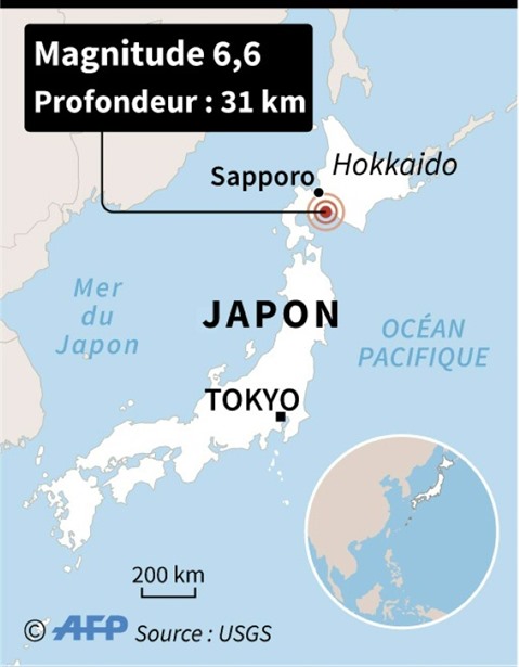À peine le cyclone passé, le pays a été secoué jeudi 6 septembre par un puissant séisme de magnitude 6,6 à Hokkaido, la plus septentrionale des îles principales du Japon, sans entraîner toutefois d'alerte au tsunami. Selon les pompiers cités par l'agence Kyodo, sept habitations se sont effondrées sur l'île et des opérations sont en cours pour secourir d'éventuelles victimes piégées sous les décombres.