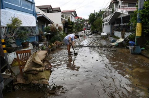 | Un habitant tente de dégager la boue provoquée par les inondations à Batangas City aux Philippines le 2 novembre. |