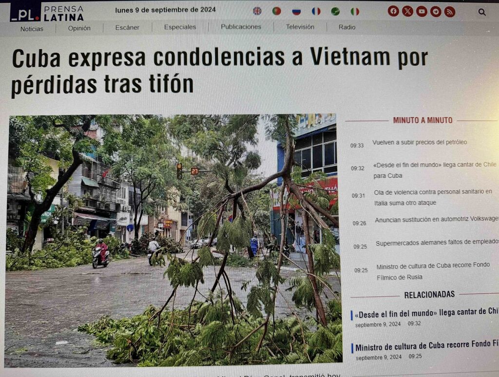 Le président cubain Miguel Díaz-Canel a présenté le 9 septembre ses plus sincères condoléances au peuple, au Parti et au gouvernement vietnamiens pour les pertes en vies humaines et en biens matériels causés par le typhon Yagi.