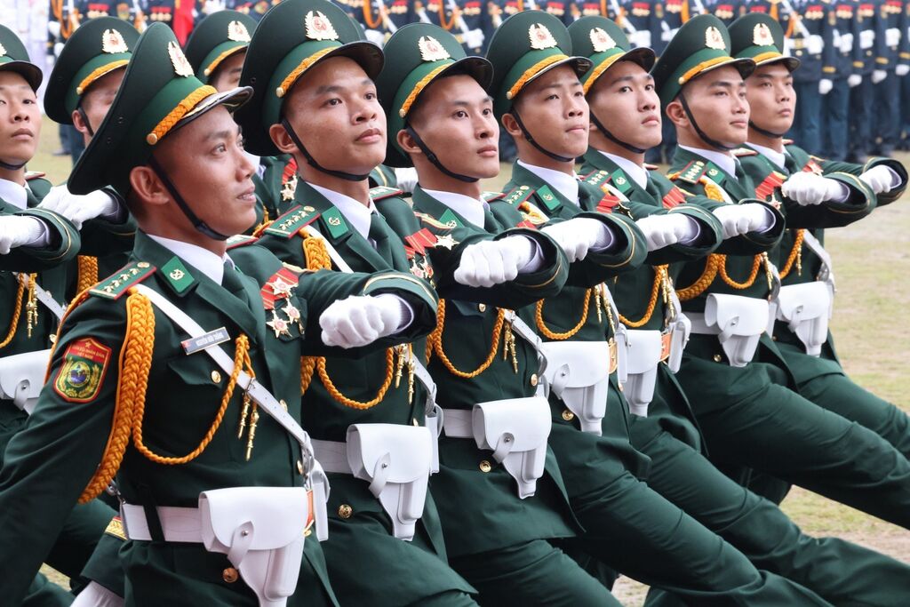 | Défilé des gardes-frontières à l'occasion du 70e anniversaire de la Victoire de Diên Biên Phu, le 7 mai 2024. |