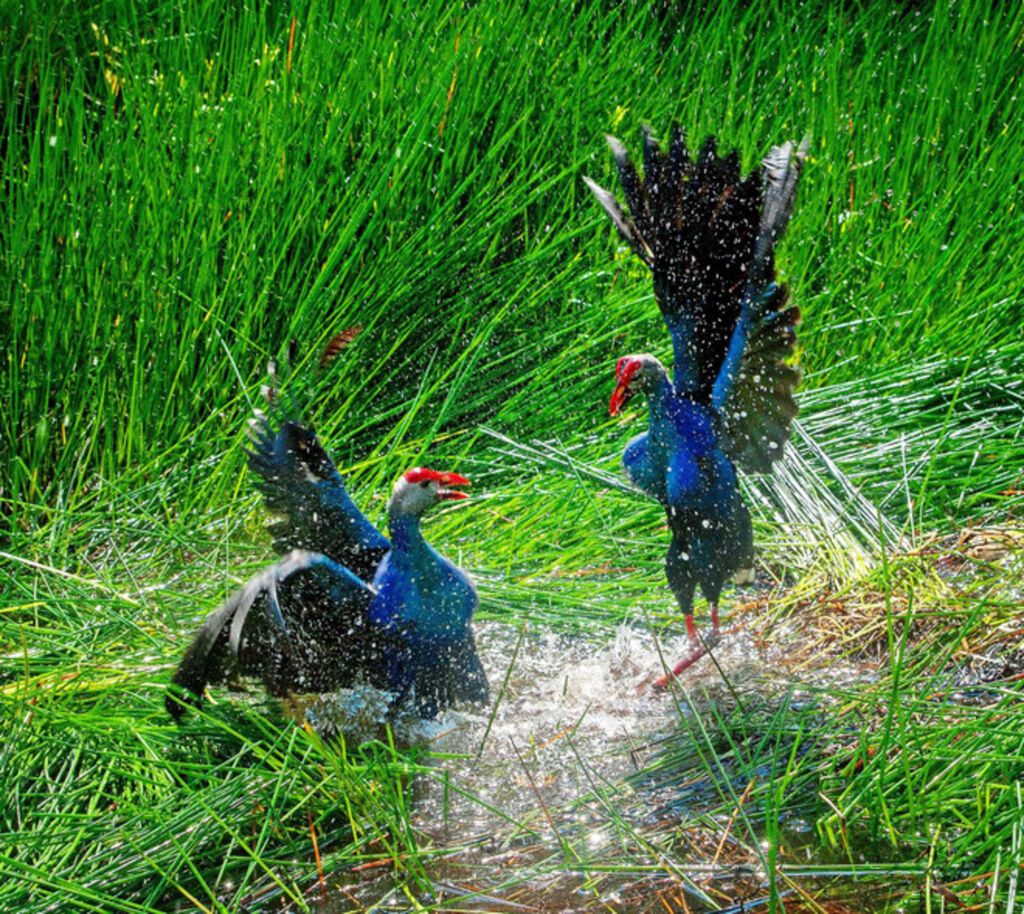 | La talève sultane (Porphyrio porphyrio) ou poule sultane, dans la forêt d’U Minh Ha. |