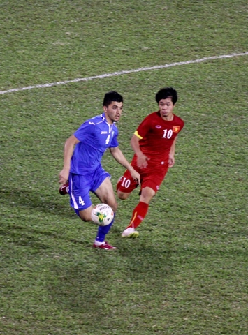 Il a fallu attendre la moitié de la première mi-temps pour que le match s’anime un peu lorsque l’hôte décida de passer la vitesse supérieure et d’attaquer plus franchement. Il s’est offert ainsi plusieurs occasions de marquer, la plus remarquable étant sur coup franc tiré par Manh Hùng (26’), mais le gardien de l’Ouzbékistan a déployé tout son talent pour sauver ses cages. À la 43e minute, ce fut le tour de Công Phuong (N°10) de briller en tirant un superbe corner enroulé vers le fond des filets du gardien Akmal, mais ce dernier était toujours aussi présent...