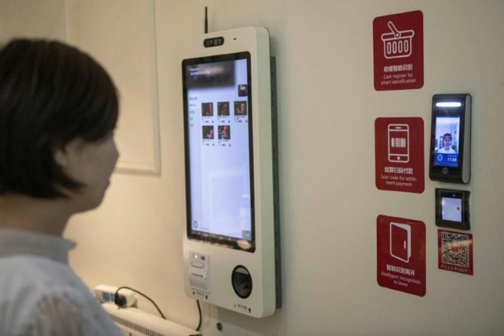 | Utilisation d'un locigiel de reconnaissance faciale dans un supermarché en libre-service à Tianjin, en Chine. |