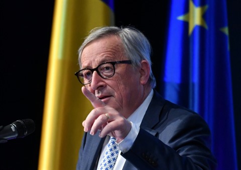 | Le président de la Commission européenne Jean-Claude Juncker, le 8 mai 2019 à Sibiu, en Roumanie. |