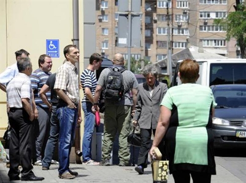 | Des personnes attendent la fin des tirs qui ont éclaté dans les rues de Donetsk, le 1er juillet. Photo : AFP/VNA/CVN |
