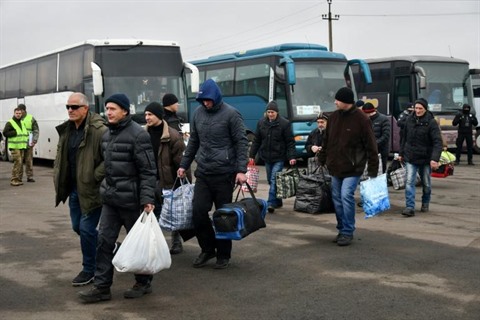 | Des opposants, faits prisonniers, lors d'un échange de prisonniers entre la Russie et l'Ukraihne à Maïorské, le 29 décembre.n |
