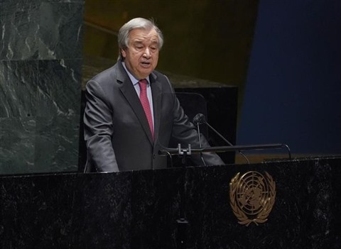 | Le secrétaire général des Nations unies, Antonio Guterres, prend la parole lors d'une séance plénière du Conseil de sécurité à New York. |
