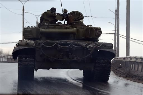 | Un tank à Donetsk (Ukraine) le 31 janvier. |