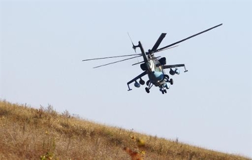 | Un hélicoptère d'attaque ukrainien patrouille dans la région de Donetsk, le 20 septembre. |