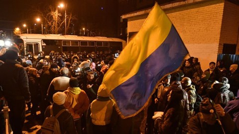 Des supporters de l'ex-président géorgien Mikheïl Saakachvili réunis devant le centre de détention où il est enfermé, le 8 décembre 2017 à Kiev. Photo : AFP/VNA/CVN |