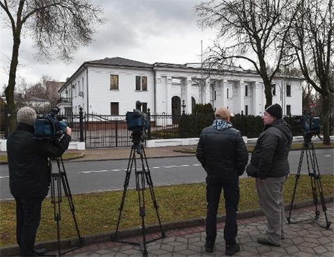 | Des caméramans devant la résidence présidentielle à Minsk le 24 décembre. |