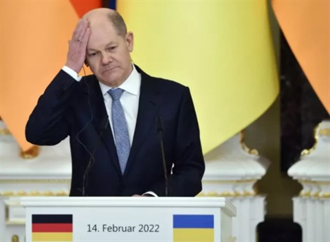 | Le chancelier allemand Olaf Scholz, le 14 février à Kiev. |