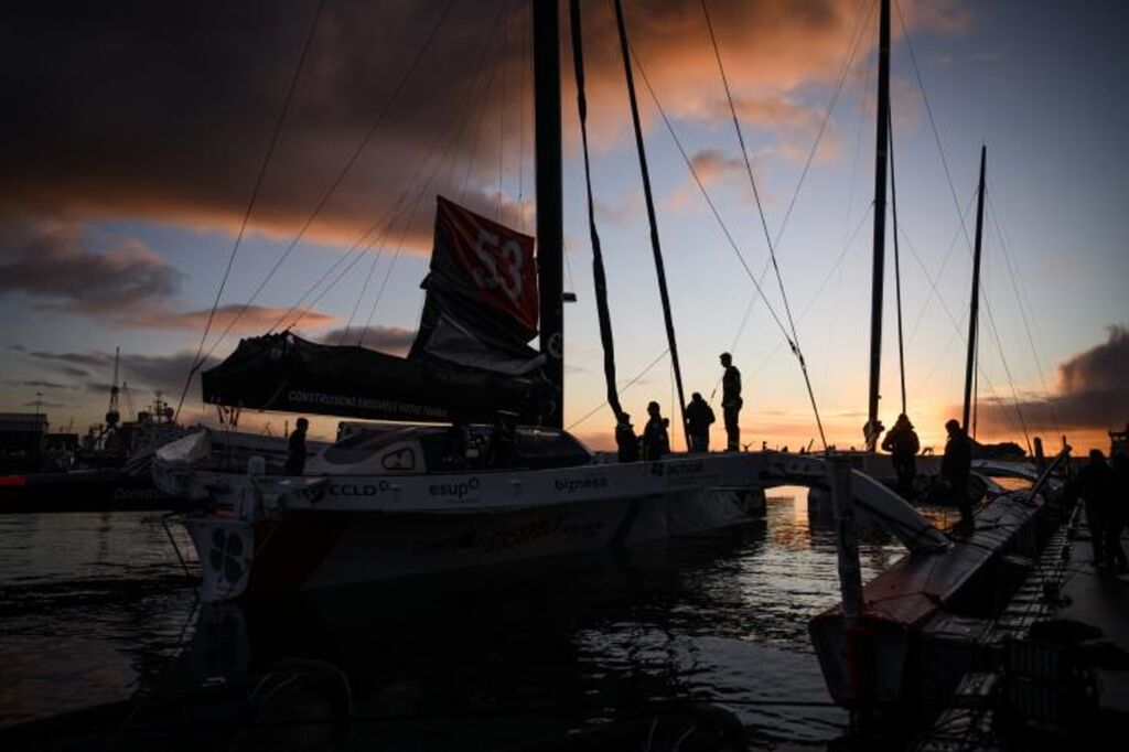 Les yeux tournés vers le ciel, il observe le sommet d'un mât où un membre de l'équipe du skipper Eric Péron s'affaire à 35 m de haut. "J'ai l'habitude de voir des bateaux mais pas de cette taille-là", dit-il, en confiant son "admiration" pour ces "aventuriers" qui doivent dompter ces "machines incroyables".