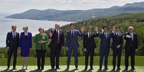 | Photo de famille du G7, le 8 juin 2018 à La Malbaie, au Canada. |