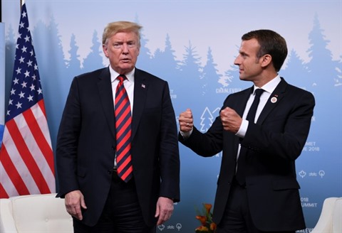 | Les présidents américain Donald Trump (gauche) et français Emmanuel Macron lors d'une rencontre le premier jour du G7, le 8 juin à La Malbaie (Canada). |