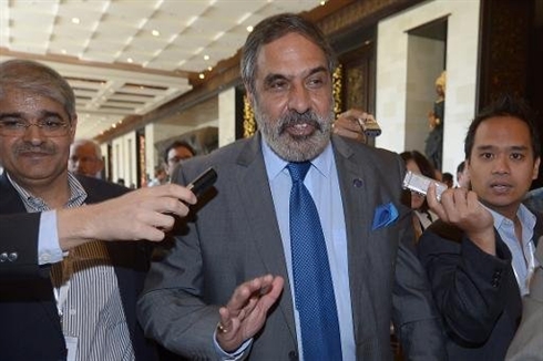 | Le ministre indien du Commerce, Shri Anand Sharma (centre), à son arrivée à la conférence de l'OMC à Nusa Dua (Bali), le 6 décembre |