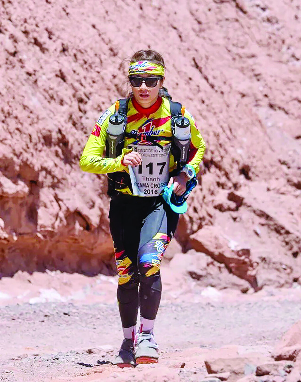 | Vu Phuong Thanh en plein effort lors de l’ultra-trail à travers le désert Atacama au Chili. |