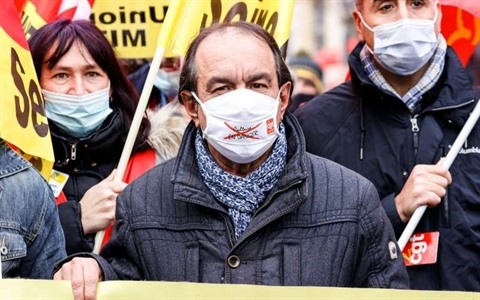 | Le secrétaire général de la CGT, Philippe Martinez, manifeste le 4 février 2021 à Paris. |