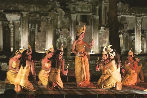 | Représentation de la troupe des Danseurs Sacrés d’Angkor. |