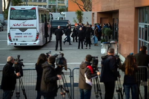 | Des proches de victimes du crash de l'avion de la Germanwings arrivent à Marseille pour une première cérémonie de recueillement, le 23 mars |