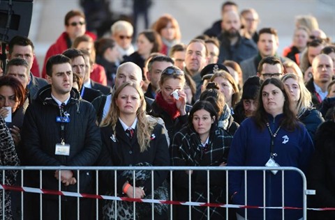 Des employés de l'aéroport de Bruxelles-Zaventem rassemblés pour commémorer le premier anniversaire des attentats jihadistes, le 22 mars 2017 en Belgique. Photo : AFP/VNA/CVN |