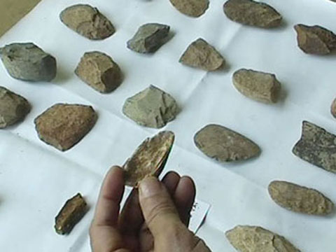 | Quatre cent objets en pierre datés de 4.000 à 4.200 ans ont été découverts dans une grotte de la province septentrionale de Tuyên Quang. Photo : CTV/CVN |