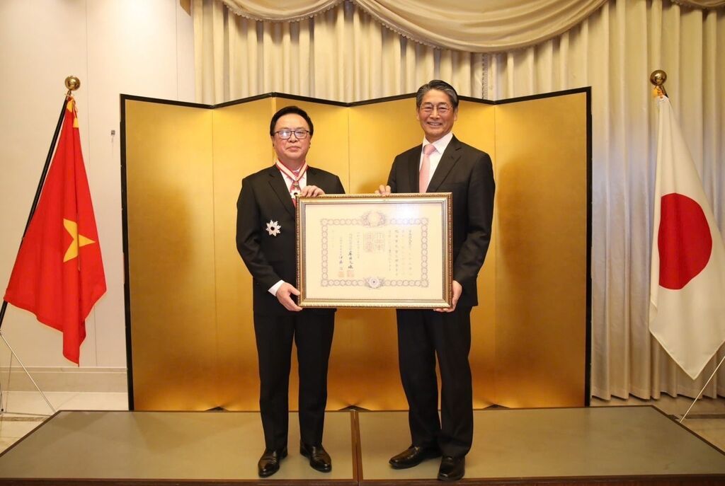 Lors de l'événement organisé au siège de l'ambassade du Japon au Vietnam, l'ambassadeur Ito Naoki, au nom du gouvernement japonais, a remis cette décoration à Hoàng Binh Quân.