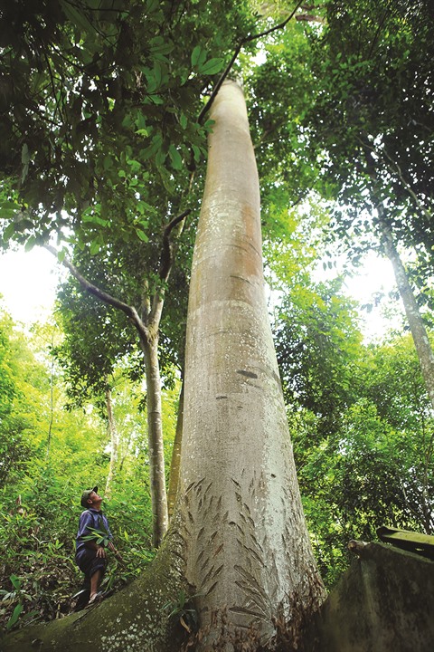 | Le tronc de l’arbre Mày Noong fait deux mètres de diamètre. |
