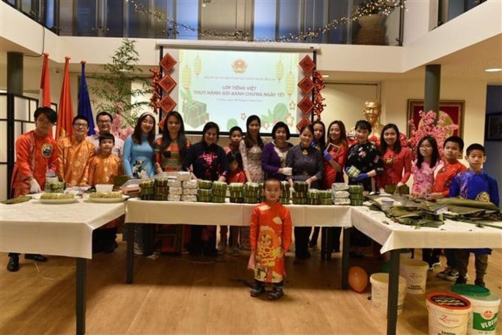 La confection de bánh chung à l'occasion du Têt traditionnel est une activité de la classe à chaque Nouvel An lunaire pour aider les enfants d’origine vietnamienne aux Pays-Bas à comprendre une coutume traditionnelle des Vietnamiens.