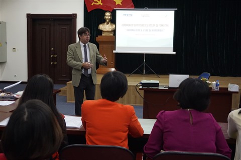 Le cours est assuré par Alain Mercier, formateur en journalisme et collaborateur régulier avec l’OIF. "C’est mon deuxième stage de formation à Hanoï. Le premier a été organisé par l’OIF en décembre dernier dans les locaux du BRAP. On est sur un atelier de formation journalistique de base pour savoir comment écrire sur le web et comment on rédige un journal de type papier sur le net", a souligné Alain Mercier.