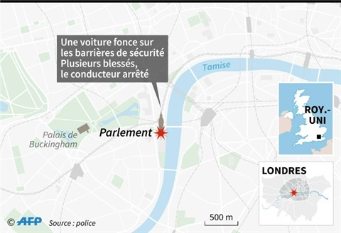 "Il y avait une voiture gris métallisé, écrasée contre les barrières noires et de la fumée s'en échappait", a raconté à l'AFP un caméraman d'ITN, Donovan Parsons. "Six 4x4 sont passés devant nous. De nombreux policiers en sont sortis, armés, et ils se sont approchés du véhicule, pointant leurs armes sur les fenêtres", a-t-il ajouté.
