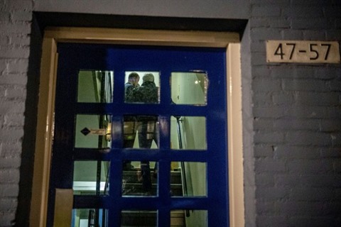 | Des policiers au domicile d'un suspect à Rotterdam le 27 septembre. Le parquet a annoncé l'arrestation de sept hommes soupçonnés de préparer un attentat "majeur" aux Pays-Bas. |