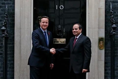 | Le Premier ministre britannique David Cameron (gauche) serre la main au président égyptien Abdel Fattah al-Sissi, le 5 novembre à Londres |