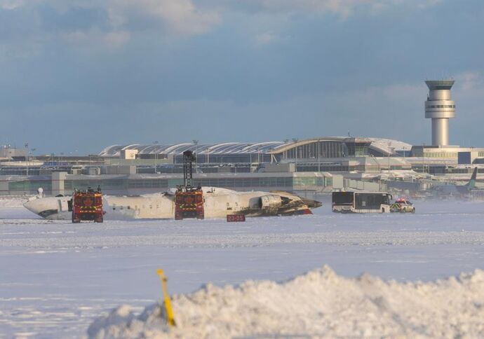 >> Un avion se renverse au moment de l'atterrissage à l'aéroport Pearson de Toronto