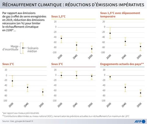 Sans une réduction "rapide, radicale et le plus souvent immédiate" des émissions de gaz à effet de serre dans tous les secteurs, il ne sera pas possible de limiter le réchauffement à +1,5°C par rapport à l'ère pré-industrielle, ni même à +2°C.