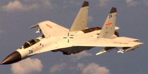 | Image fournie par le Pentagone de l'avion de chasse chinois qui a "frôlé" un appareil américain. |