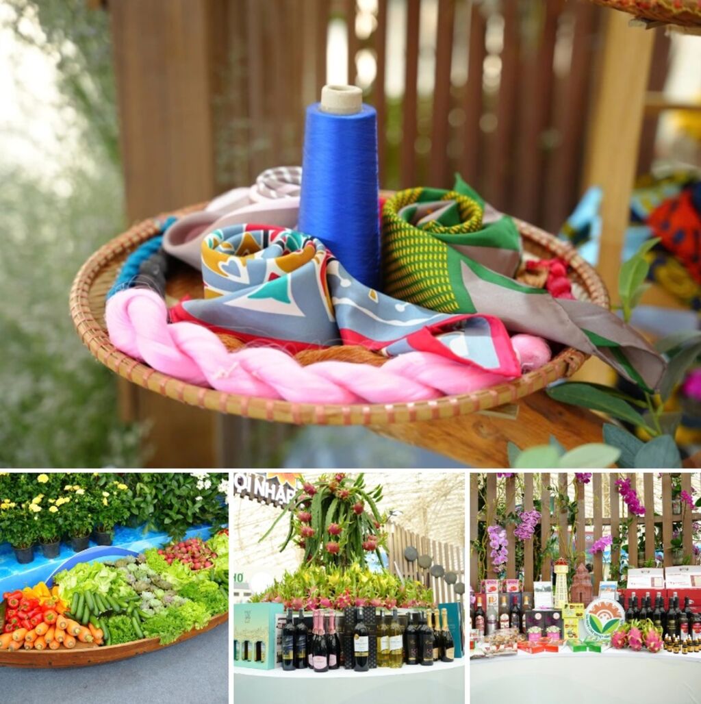 Dans l’espace "Mille Fleurs", le bateau décoré de fleurs immortelles occupe tout le champ de vision. Sur le pont, les "ambassadeurs économiques" de Lâm Dông - café, thé, légumes et fleurs, soie, fruits, minéraux… - sont présentés de manière à la fois esthétique et évocatrice de l’histoire de l’exportation.