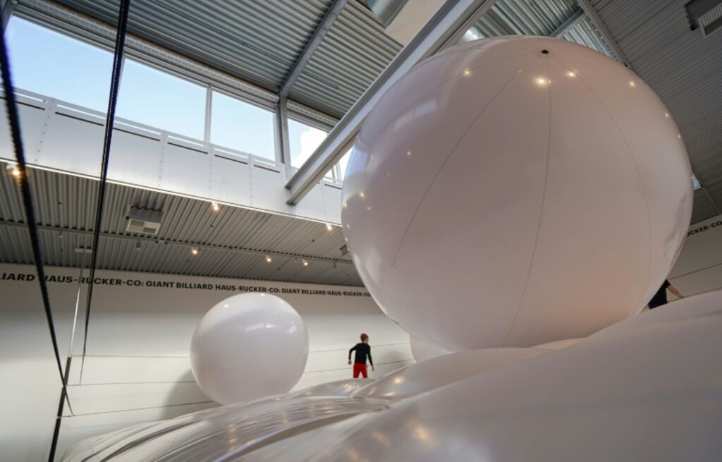 Au Musée d'art moderne d'Arken, dans la banlieue sud de la capitale danoise, les visiteurs peuvent depuis samedi 8 octobre bondir, sautiller ou courir sur un immense matelas gonflable blanc, esquivant ou recherchant les trois énormes billes baudruches de ce "billard humain" - une explosion d'énergie inédite dans les salles habituellement calmes.