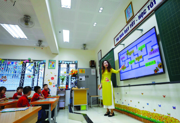 De plus, la transition digitale est largement implantée en cours au sein des différents établissements du pays, même les plus reculés, impliquant élèves et professeurs. C’est le cas pour “Hoàng Thi Thanh Binh, institutrice en classe 1 (CP français) dans une école primaire du district de Đông Van, province de Hà Giang (Nord) qui intègre le numérique dans ses cours depuis dix ans. En plus de préparer ses plans de leçons sur ordinateur, elle intègre aussi des images et des vidéos dans ses leçons pour les rendre plus vivantes. Cela suscite l’intérêt des élèves” et “une amélioration notable de leurs résultats”.