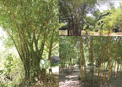Dans son jardin luxuriant, les touffes de bambous sont bien rangées, reliées par des allées bordées de fleurs. Le lieu est traversé par un petit ruisseau, du nom de Suôi Da, qui permet d’assurer l’arrosage toute l’année. Chaque touffe de bambou porte une plaque en bois sur laquelle est noté son «curriculum vitae» : nom (vietnamien et scientifique), espèce, localité d’origine… Parmi ces bambous, trois espèces sont très recherchées : le bambou noir, que l’on trouve à Hà Giang, Lào Cai (à l’extrême Nord) et Da Lat (hauts plateaux du Centre), le bambou vông originaire de Deo Gio et de Bac Can (Nord), et le bambou bông originaire de Dông Thap, de Bên Tre et d’An Giang (delta du Mékong, Sud).