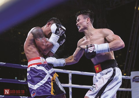 | Nguyên Van Duong (droite) lors de son combat contre le Philippin Jenel Lausa, tenu en octobre 2019 à Hanoï. |